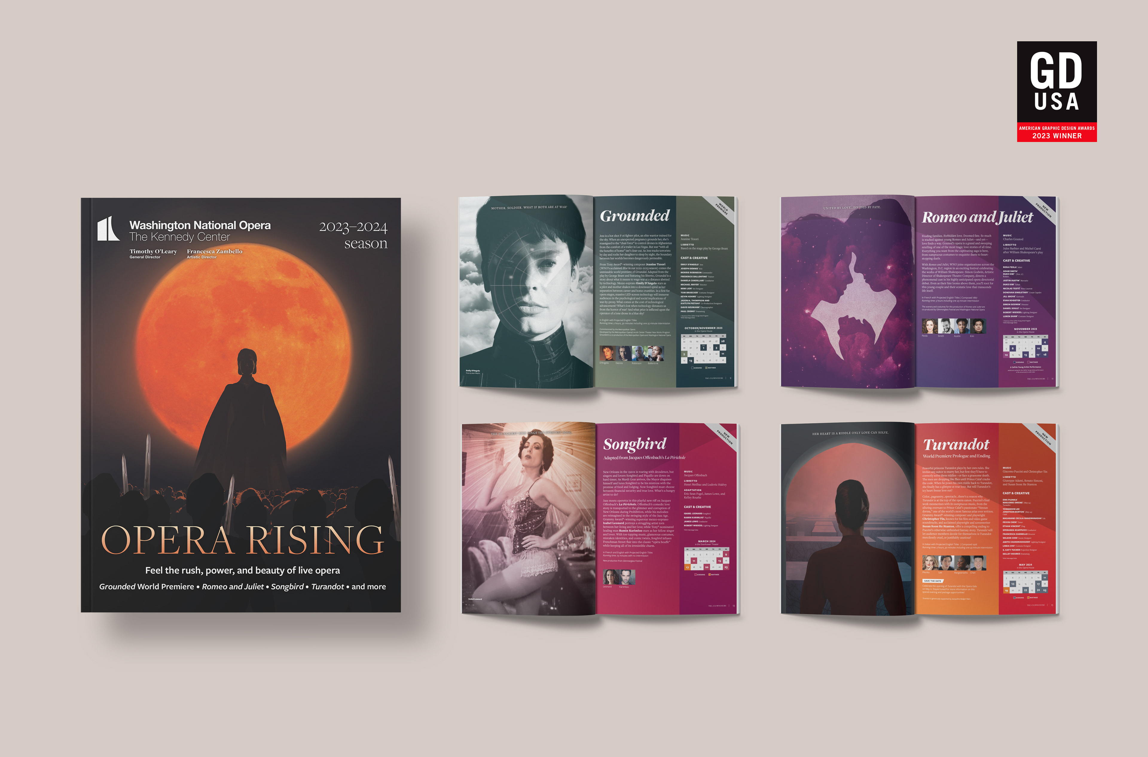 The 2023–2024 WNO Brochure was awarded a 2023 American Graphic Design Award by GDUSA Magazine.