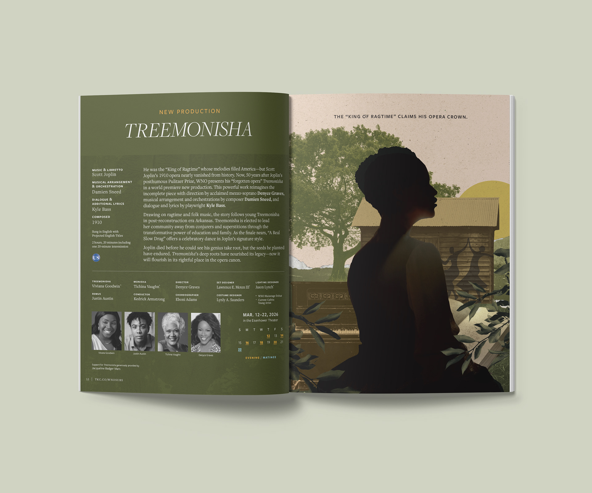 Since 1956, Washington National Opera (WNO) has presented compelling operas and bold artistic direction to audiences at The Kennedy Center. Working under The Kennedy Center's established brand, I designed marketing materials and advertisements across digital and print channels to promote two seasons of WNO. I produced original artwork and custom digital illustrations for new productions including Puccini's Turandot (WNO, 2024), Tesori's Grounded (WNO, 2023), and Joplin's Treemonisha (WNO, 2026). I also designed materials for WNO's year-round events including the annual WNO Gala and Opera in the Outfield.